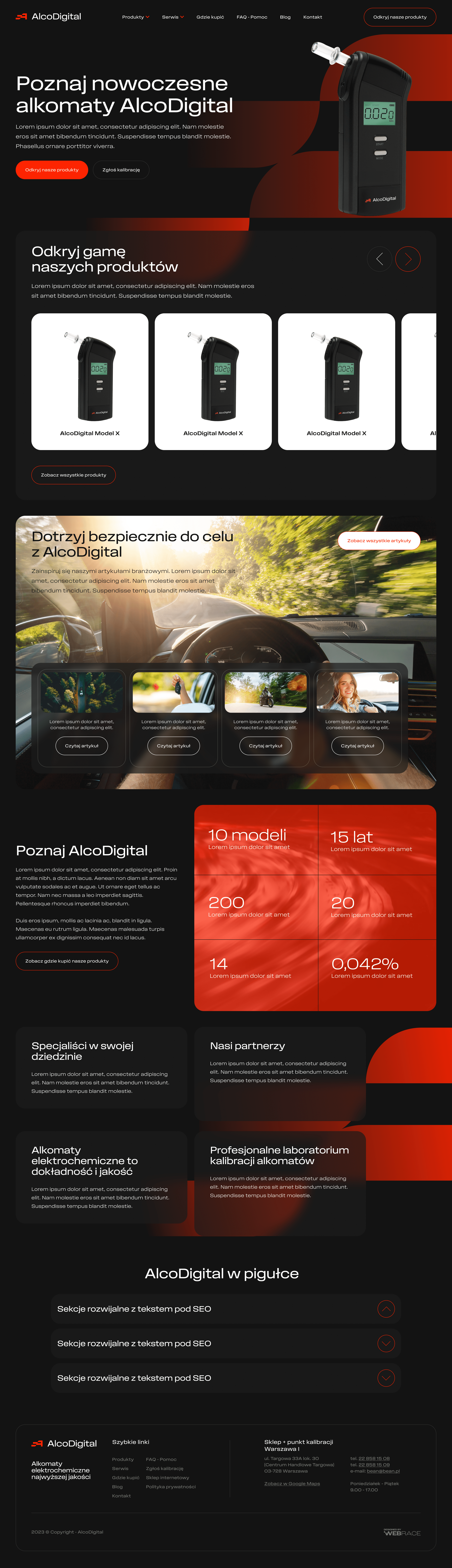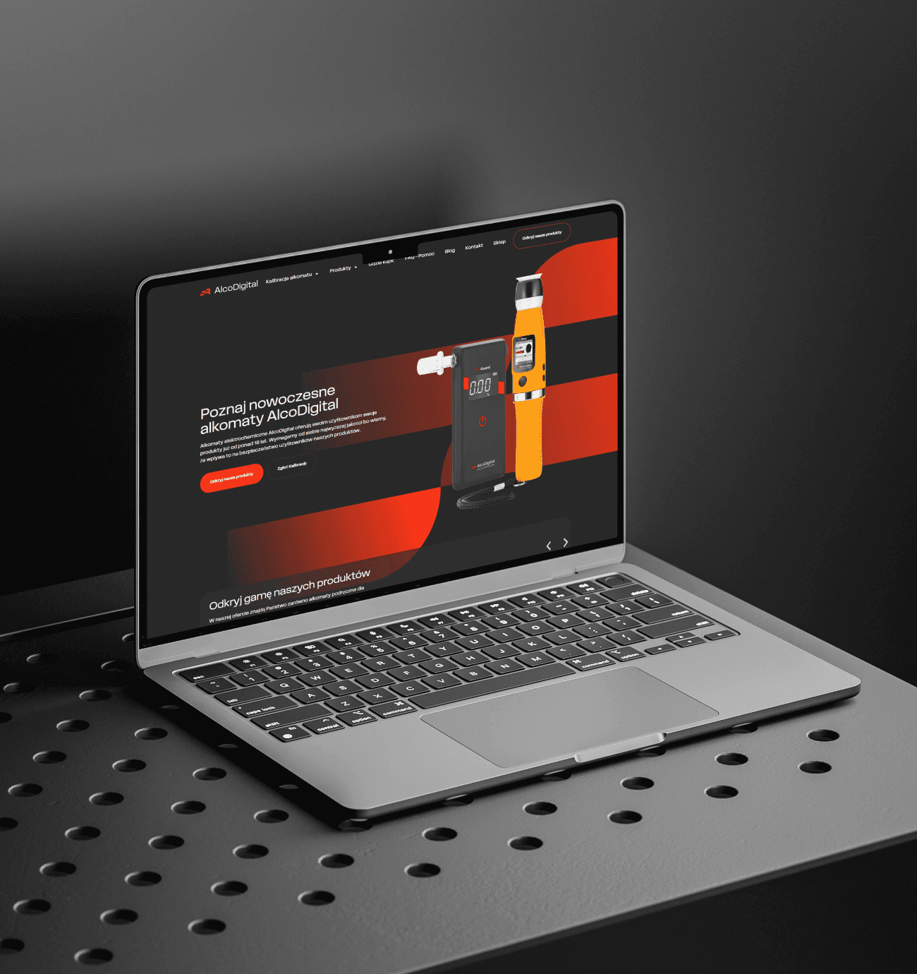 Dla marki AlcoDigital stworzyliśmy nowoczesny branding oraz stronę internetową, która redefiniuje sposób prezentacji urządzeń pomiarowych. Zamiast typowego, medycznego wyglądu, postawiliśmy na Dark Mode UI i techniczny sznyt. Kontrastowa kolorystyka, wysokiej jakości packshoty i intuicyjna nawigacja podkreślają precyzję urządzeń oraz budują zaufanie użytkownika, prowadząc go gładko od poznania produktu do zakupu.