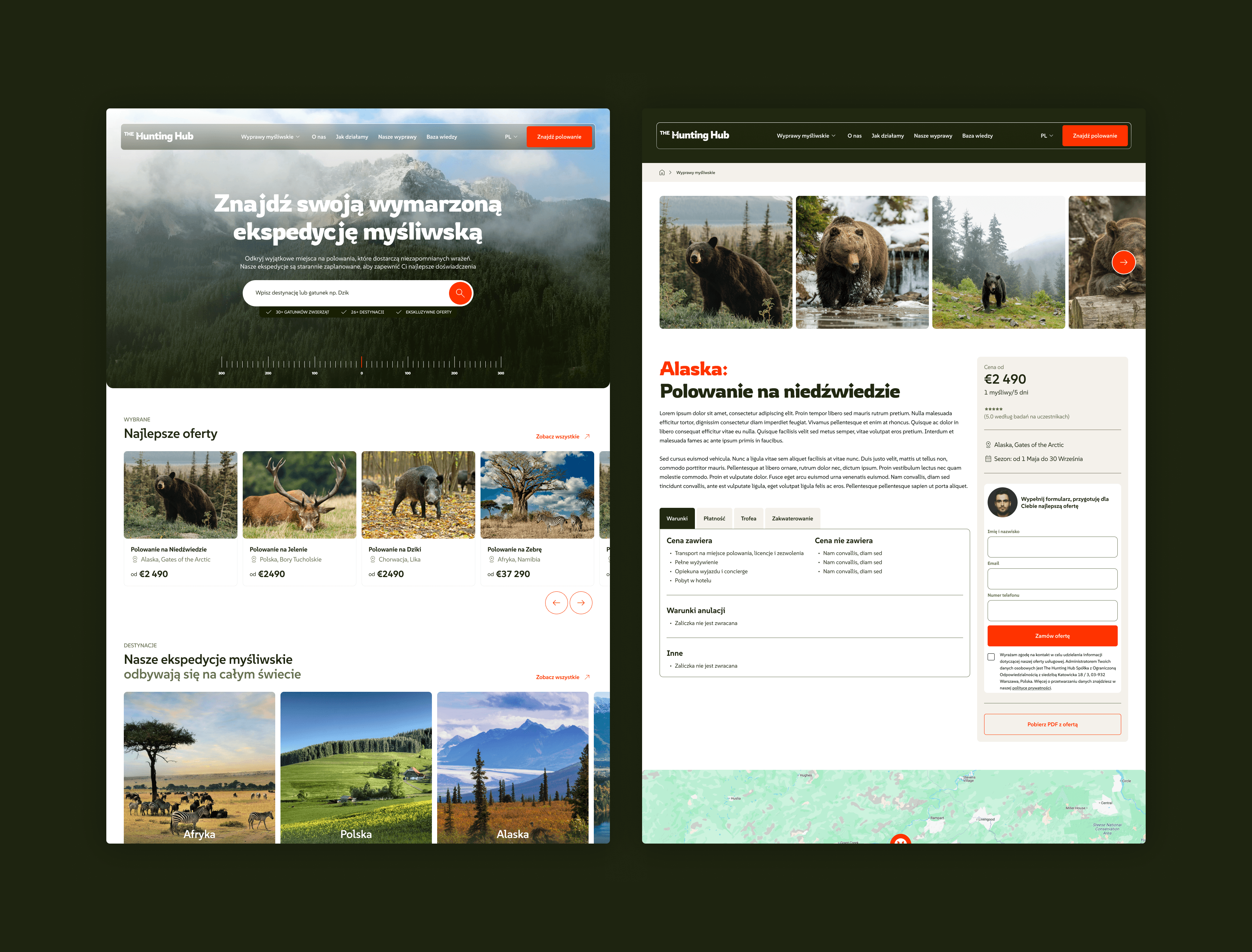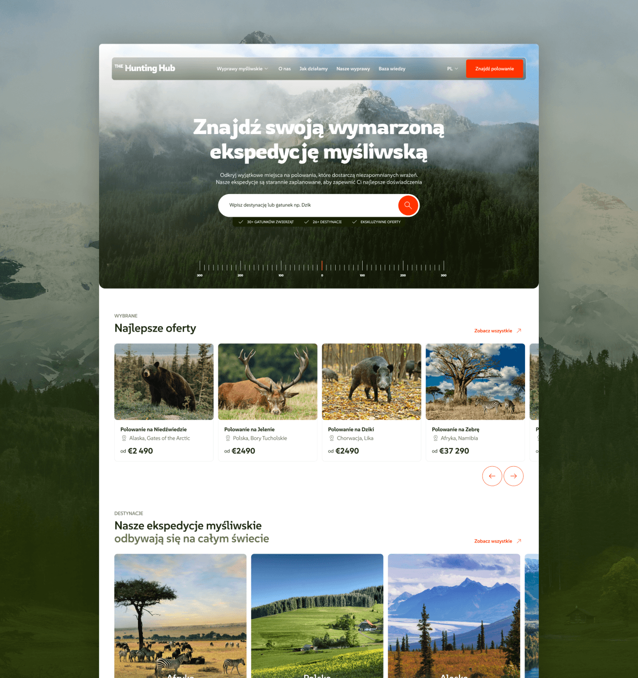 Dla The Hunting Hub zbudowaliśmy wyróżniającą się identyfikację wizualną i stworzyliśmy funkcjonalną stronę internetową z ofertami polowań. Etycznymi!